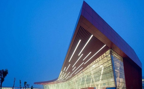 青岛国际博览中心展馆整体规划四大功能区域,建设南、北登录大厅、多功能馆和十座标准展馆,主体为钢结构单层设计,青岛博览中心总建筑面积约22万平米,总展览面积约18万平米。博览中心室内总展览面积约12万平米,可容纳6000多个标准展位,室外展场约6万多平米,配套功能区面积约4万多平米。