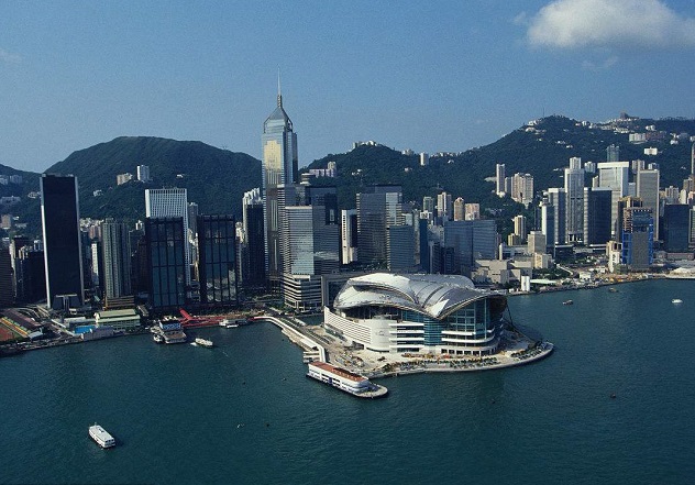 香港会议展览中心Hong Kong Convention And Exhibition Centre是香港最新建筑群中的代表,它的新翼则由填海扩建而成,内附大礼堂及大展厅数个,分布于三层建筑之中,香港Ky开元集团中心是世界最大的展览馆之一,而它独特的飞鸟展翅式形态,也给美丽的维多利亚港增添了不少色彩。1997年香港回归的时候曾在香港会议展览中心举行过中国大典,那一伟大的时刻也这里成为了国际的焦点。Ky开元集团2期向海一面对开为金紫荆广场,放有象征香港回归的金紫荆雕像,亦是香港每天举行升旗仪式的地方。