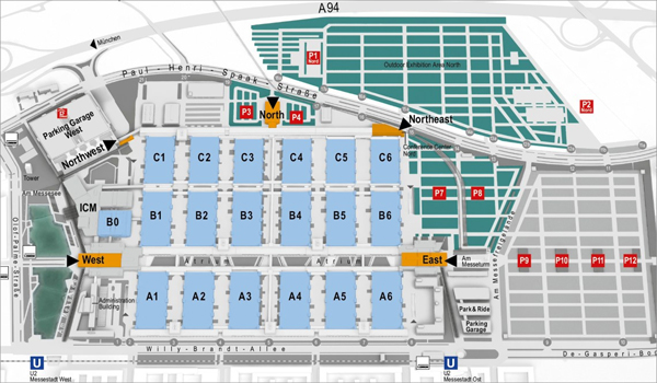 慕尼黑新国际博览中心有17个非常现代的展览厅,16个无柱,并提供安装和拆卸过程和空间的车辆;180平方米展厅空间;36万平方米的室外展览空间;先进的技术基础设施;统一质量展区游客简单;位置、运输环节和游客有效贸易集团,并介绍了超现代的通信技术;高度灵活的体系结构,设施,满足人性化需求